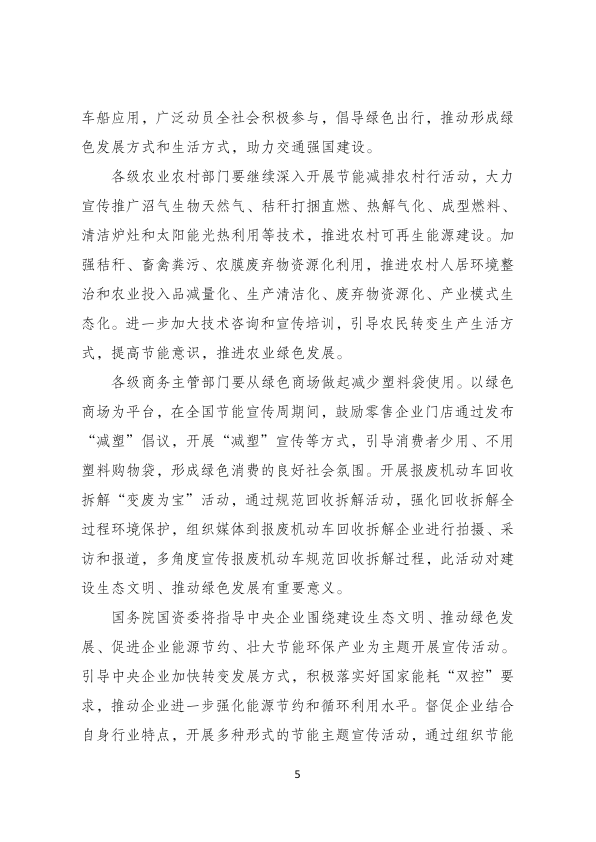 四、各联合主办部门、各地方节能宣传周和低碳日活动牵头部门要制定工作方案,办好具有行业特点、地方特色的宣传活动,并将有关活动方案提交至国家发展改革委(环资司)、生态环境部(气候司),两部委视情况将有关活动纳入全国整体宣传范畴,鼓励媒体统一宣传报道。活动结束后,各联合主办部门、各地方节能宣传周和低碳日活动牵头部门要对本年度节能宣传周和低碳日活动情况进行总结,并于7月31日前将书面总结材料提交国家发展改革委(环资司)、生态环境部(气候司)。